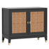 A stylish blend of dark wood and rattan finish, the Batavia Sideboard brings warmth and texture to any space. Crafted from pine wood and mdf with brass fixtures and rattan finish, it features two woven cane doors with elegant brass-finished handles and feet. Both practical and refined, this compact sideboard offers useful storage while adding a touch of understated charm to your home.
