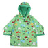 This print looks straight out of a storybook with its green background and busy farmyard scene with colourful animals, tractors, hay bales and hen houses. The coat is lined in co-ordinating green towelling.